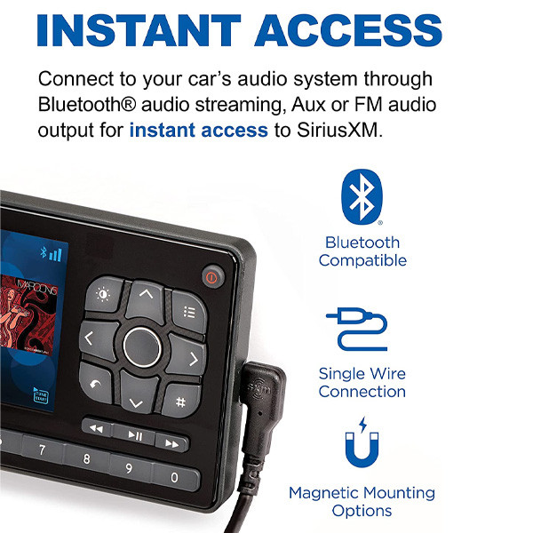 Special Feature : • Connect to your car’s audio system via Bluetooth® audio streaming, Aux or FM audio output for instant access to SiriusXM• Connect to your car’s audio system via Bluetooth® audio streaming, Aux or FM audio output for instant access to SiriusXM