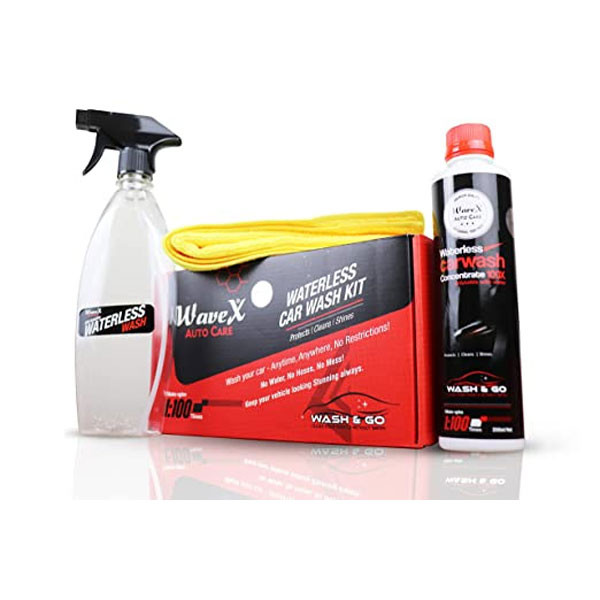 This Kit Contains Wavex Waterless Car Wash Concentrate 350ml, Wavex Micofiber Towel, Empty Bottle and Spray Pump